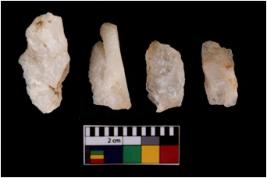 | Description / विवरण | There are n 4 flake cores. All of them are fully fluted flake cores without any trace of crested ridge flakes. Some are tapering at one end and some have sharp edges. |