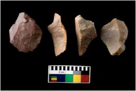 | Description / विवरण | There are n 4 of utilized worked cores. They show multidirectional irregular scar pattern. Three are tapering at one. All are having sharp edges. |