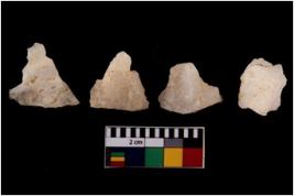 | Description / विवरण | There are n 4 flake cores. All of them are fully fluted flake cores without any trace of crested ridge flakes. Some have sharp edges and some have round edges. |