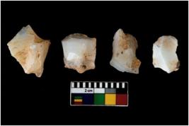 | Description / विवरण | There are n 4 of utilized worked cores. They show multidirectional irregular scar pattern. Two are tapering at one end and one has a flat base. |