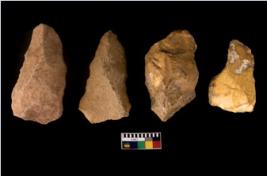 | Description / विवरण | There are n 4 of utilized worked cores. They show multidirectional irregular dominant scar pattern. They are tapering at one end. |