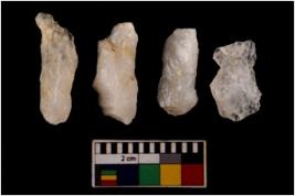 | Description / विवरण | There are n 4 flake cores. All of them are fully fluted flake cores without any trace of crested ridge flakes. Some are tapering at one end and some have sharp edges. |
