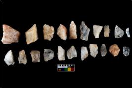 | Description / विवरण | All the n 21 flakes; some are sharp as well with sides are retouched. Some of the flakes are crescent shape. Some of them represent Levallois type of flakes. While some of them have tanged point. |