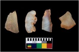 | Description / विवरण | There are n 4 of utilized worked cores. They show multidirectional irregular scar pattern. Two are tapering at one end |
