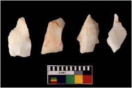 | Description / विवरण | There are n 4 flake cores. All of them are fully fluted flake cores without any trace of crested ridge flakes. Some are tapering at one end and some have sharp edges. |