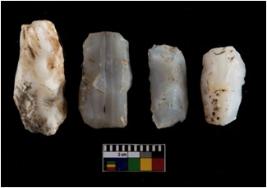 | Description / विवरण | There are n 4 of utilized worked cores. They show multi directional irregular scar pattern and have sharp edges.Two of them shows impurities. |