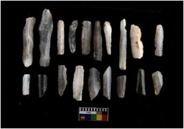 | Description / विवरण | There are n 20 blades. out of which some are blunted back blades, points, and truncated blades. All have retouched sides. Few are debitage. |