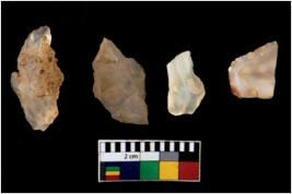 | Description / विवरण | There are n 4 of utilized worked cores. They show multidirectional irregular scar pattern. Three is tapering at one end. |