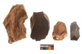 | Description / विवरण | There are n 04 of utilized worked flakes. They show multi-directional irregular scar pattern. One of them is are tapering on one end. |