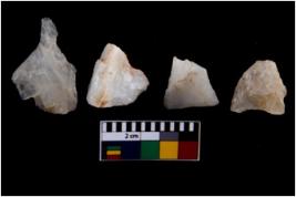 | Description / विवरण | There are n 4 flake cores. All of them are fully fluted flake cores without any trace of crested ridge flakes. Some have sharp edges whereas some have blunted edges. |