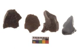 | Description / विवरण | There are n 04 of utilized worked flakes. They show multi-directional irregular scar pattern. Two of them are tapering on one end with a point. |