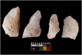 | Description / विवरण | There are n 4 flake cores. All of them are fully fluted flake cores without any trace of crested ridge flakes. Some are tapering at one end and some have sharp edges. |