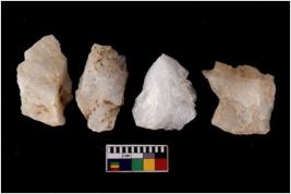 | Description / विवरण | There are n 4 flake cores. All of them are fully fluted flake cores without any trace of crested ridge flakes. Some are tapering at one end and some have sharp edges. |