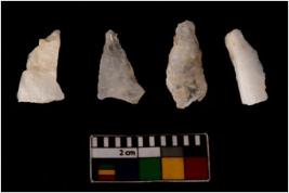 | Description / विवरण | There are n 4 flake cores. All of them are fully fluted flake cores without any trace of crested ridge flakes. Some are tapering at one end and some have sharp edges. |