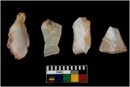 | Description / विवरण | There are n 4 of utilized worked cores. They show multidirectional irregular scar pattern. Two are tapering at one end and one has a flat base. All are having sharp edges. |