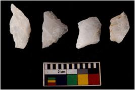 | Description / विवरण | There are n 4 flake cores. All of them are fully fluted flake cores without any trace of crested ridge flakes. Some are tapering at one end and some have sharp edges. |