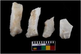 | Description / विवरण | There are n 4 flake cores. All of them are fully fluted flake cores without any trace of crested ridge flakes. Some are tapering at one end. Few have sharp edges while some have flat base. |