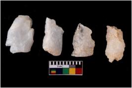 | Description / विवरण | There are n 4 flake cores. All of them are fully fluted flake cores without any trace of crested ridge flakes. Some are tapering at one end and some have sharp edges. |