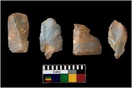 | Description / विवरण | There are n 4 of utilized worked cores. They show multidirectional irregular scar pattern. One is tapering at one end and one has a flat base. All are having sharp edges. |