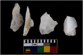 | Description / विवरण | There are n 4 flake cores. All of them are fully fluted flake cores without any trace of crested ridge flakes. Some are tapering at one end. Few have sharp edges while some have flat base. |