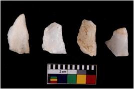 | Description / विवरण | There are n 4 flake cores. All of them are fully fluted flake cores without any trace of crested ridge flakes. Some are tapering at one end and few have sharp edges. |