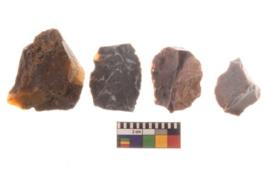 | Description / विवरण | There are n 04 of utilized worked flakes. They show multi-directional irregular scar pattern. Two of them are tapering on one end. |