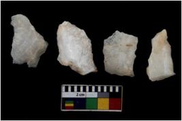 | Description / विवरण | There are n 4 flake cores. All of them are fully fluted flake cores without any trace of crested ridge flakes. Two are tapering at one end; whereas two have flat base. |