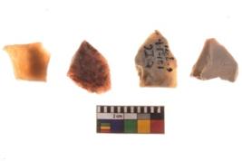 | Description / विवरण | There are n 04 of utilized worked flakes. They show multi-directional irregular scar pattern. Three are tapering on one end. |
