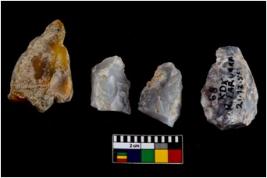 | Description / विवरण | There are n 4 flake cores. All of them are fluted without any trace of crested ridge flakes. Two are tapering at one end and all have sharp edges. |