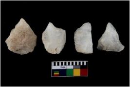 | Description / विवरण | There are n 4 flake cores. All of them are fully fluted flake cores without any trace of crested ridge flakes. Two have flat base. Three of them are tapering at one end. |