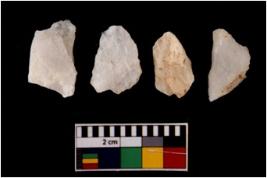 | Description / विवरण | There are n 4 flake cores. All of them are fully fluted flake cores without any trace of crested ridge flakes. Some are tapering at one end and some have sharp edges. |