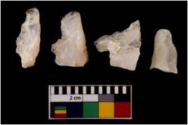 | Description / विवरण | There are n 4 flake cores. All of them are fully fluted flake cores without any trace of crested ridge flakes. Some are tapering at one end and some have sharp edges. |