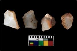 | Description / विवरण | There are n 4 of utilized worked cores. They show multidirectional irregular scar pattern. Two are tapering at one end and one has a flat base. All are having sharp edges. |