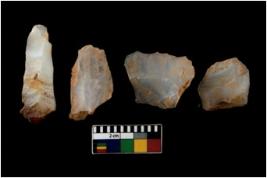 | Description / विवरण | There are n 4 of utilized worked cores. They show multidirectional irregular scar pattern. One is tapering at one end and one has a flat base. All are having sharp edges. |