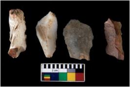 | Description / विवरण | There are n 4 of utilized worked cores. They show multidirectional irregular scar pattern. Three are tapering at one end and are elongated in shape. |