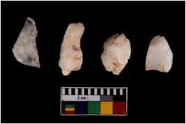 | Description / विवरण | There are n 4 flake cores. All of them are fully fluted flake cores without any trace of crested ridge flakes. Some are tapering at one end and few have sharp edges. |