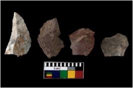 | Description / विवरण | There are n 4 of utilized worked cores. They show multidirectional irregular scar pattern. Two are tapering at one end and are elongated in shape. |