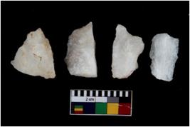 | Description / विवरण | There are n 4 flake cores. All of them are fully fluted flake cores without any trace of crested ridge flakes. Two have flat base whereas some have pointed edges. |