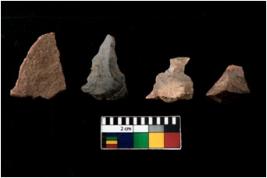 | Description / विवरण | There are n 4 of utilized worked cores; of which one is of sandstone, one of chert and two of chalcedony. They show multidirectional irregular scar pattern. Three is tapering at one end and one tip is broken. |