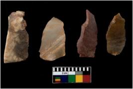| Description / विवरण | There are n 4 of utilized worked cores; two are of chert and two of chalcedony. They show multidirectional irregular scar pattern. All are tapering at one end and are elongated in shape. All are having sharp edges. |