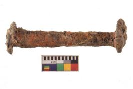 | Description / विवरण | Specimen having both the square and flat ends and thickly corroded surface. |