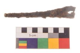 | Description / विवरण | Specimen of nail; head is missing, and is blunt at one end. It is thickly corroded. |