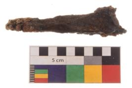 | Description / विवरण | Specimen of nail; head is missing, and is blunt at one end. It is thickly corroded. |