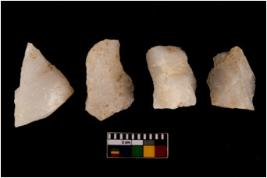 | Description / विवरण | There are n 4 flake cores. All of them are fully fluted flake cores without any trace of crested ridge flakes. Some are tapering at one end and some have sharp edges. |