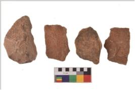 | Description / विवरण | There are n 4 utilized flakes; there are multi- directional irregular scar pattern on both dorsal and ventral face of the flakes. Most of them are having sharp edges. |