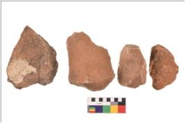 | Description / विवरण | There are n 4 utilized flakes; there are multi- directional irregular scar pattern on both dorsal and ventral face of the flakes. Most of them are having sharp edges. |