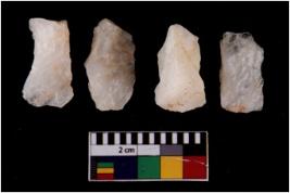 | Description / विवरण | There are n 4 flake cores. All of them are fully fluted flake cores without any trace of crested ridge flakes. Some are tapering at one end and some have sharp edges. |