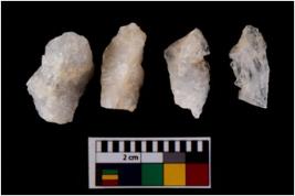 | Description / विवरण | There are n 4 flake cores. All of them are fully fluted flake cores without any trace of crested ridge flakes. Some are tapering at one end and some have sharp edges. |