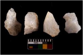 | Description / विवरण | There are n 4 flake cores. All of them are fully fluted flake cores without any trace of crested ridge flakes. Some are tapering at one end and some have sharp edges. |