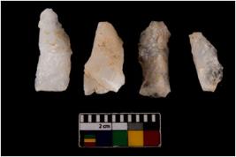 | Description / विवरण | There are n 4 flake cores. All of them are fully fluted flake cores without any trace of crested ridge flakes. Some are tapering at one end and some have sharp edges. |